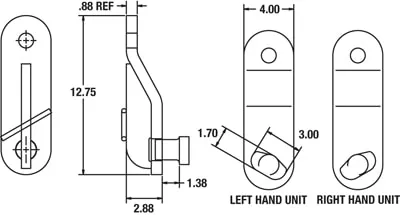 Model Number Rated Capacity Each (tons) A (in.) B (in.) C (in.) D (in.) E (in.) F (in.) RH Color LH Color Weight (lbs.)
