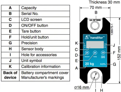The Handifor is a convenient electronic load indicator including hooks for measuring small weights, quickly and easily.