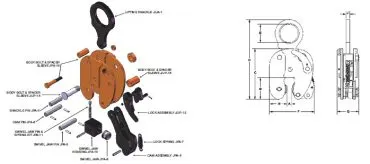Renfroe Model J is a vertical lifting clamp capable of turning a single plate or member from horizontal to vertical and back to horizontal through the same 90 degree arc.