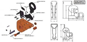 The Model M incorporates a “Lock Closed” feature which facilitates attaching the clamp to the member being lifted.