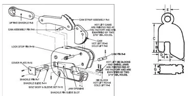 | Rated Capacity ( Tons ) | Plate Thickness A ( in. ) | B ( in. ) | C ( in. ) | D ( in. ) | E ( in. ) | F ( in. ) | G ( in. ) | Weight ( lbs. ) |